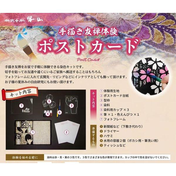 自宅で簡単十日町友禅染め体験キット翠山工房ハガキ|手描き友禅 染色キット ハンドメイド おうち時間 夏休み 工作 自由研究 伝統工芸 体験セット
