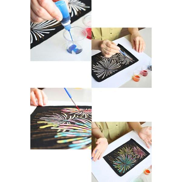 ・黄・赤・青の染料付き(混ざり合って緑・オレンジ・紫など豊かな色彩が生まれます)