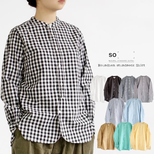 【送料無料】 SO[ ] コットン100% ラウンドヘム スタンドカラー シャツ 春 夏 秋 冬 トップス バンドカラー タイプライター エスオー #W1Q1 69-SB-0501[M便 1/
