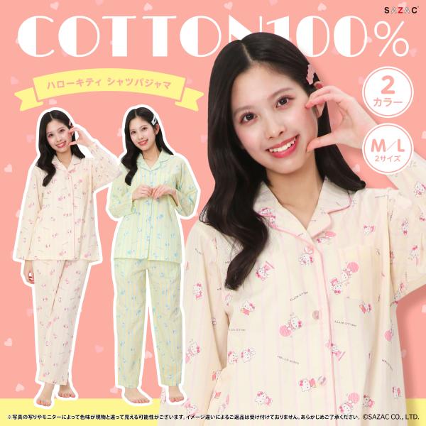 SAZAC サザック パジャマ ルームウェア ファッション アパレル 服 寝巻き 部屋着 春用 夏用 秋用 冬用 サンリオ Sanrio 半袖 上下セット シャツパジャマ ゆったり 伸縮性 サラサラ 涼しい ストレッチ ポケット付き かわいい 公式ライセンス商品 ワンピース チャーミーキティ ハローキティ キティちゃん