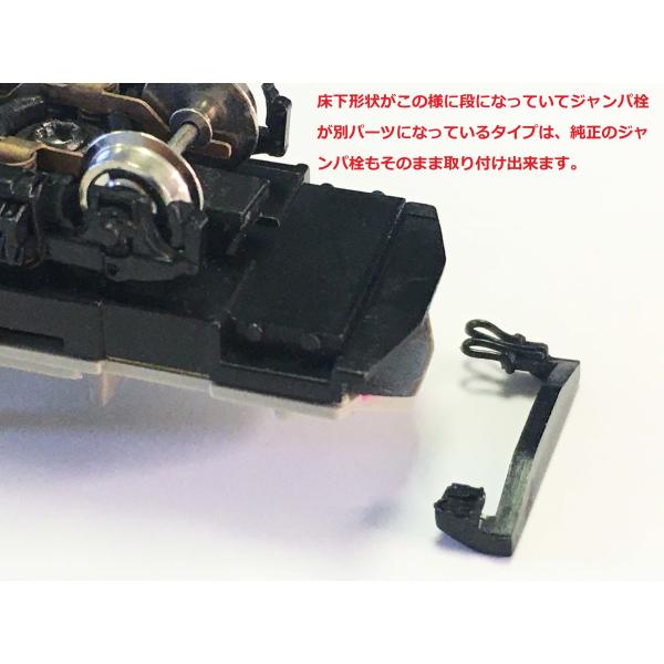 TOMIXの12系、24系等の折妻タイプでTNカプラー対応仕様の客車に適合し、床板が写真の様な形状のタイプでは純正のジャンパ栓パーツもそのまま取り付け出来ます。首振りも十分に考慮しておりますので、一般的なサイズの曲線通過も問題ありません。(KATO製のボディマウントカプラー仕様と同程度)