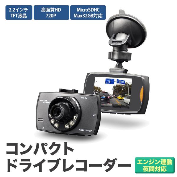 自動録画 激安 コンパクト ドライブレコーダー 720P HD 2.2インチ TFT液晶 ドライブ レコーダー ドラレコ エンジン 連動 繰り返し 動画 静止画 防犯 車 カメラ