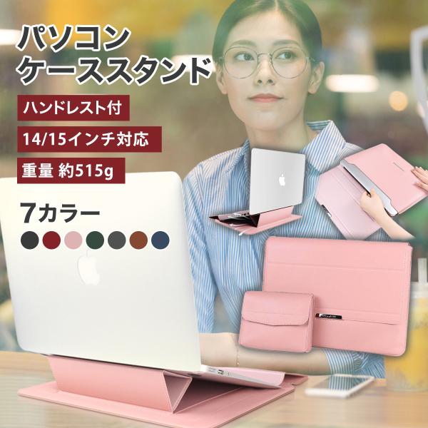ノートパソコン ケーススタンド ハンドレスト付 小物入れ付属 14 - 15インチ対応 多機能 3in1 カバー 薄型 耐衝撃 全面保護 防水加工 軽量 ケーブルバンド