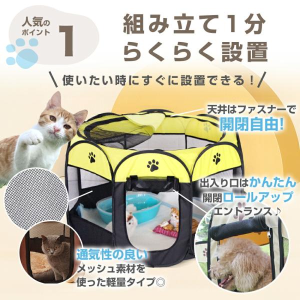 折りたたみ ペットサークル Mサイズ ポータブル ケージ 軽量 屋根 ドア ゲージ フェンス ペット 犬 猫 小型 中型 うさぎ 小動物 屋内 屋外 通気 ソフト 置くだけ