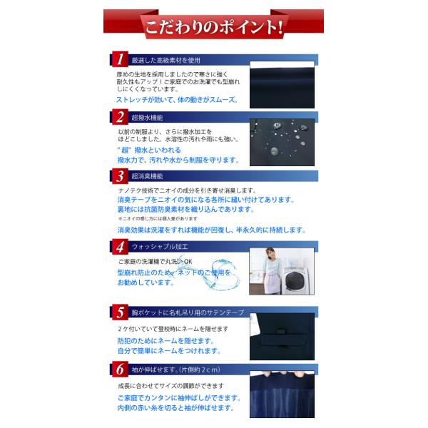 ■超撥水機能で水溶性の汚れや雨から制服を守ります。