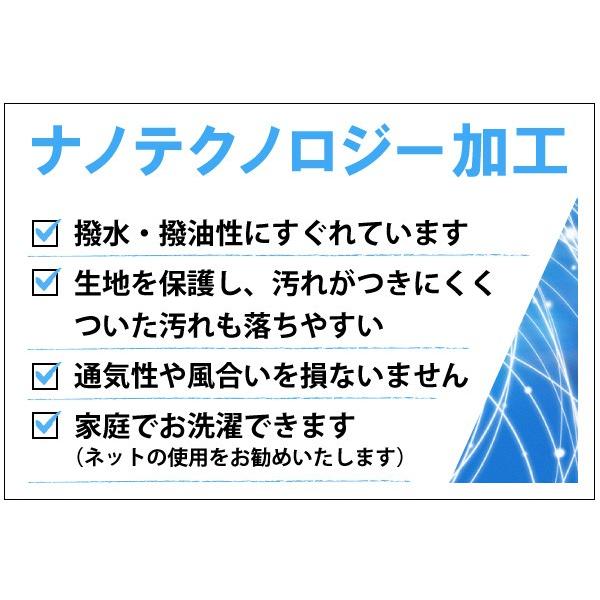 ナノテクノロジー加工によって撥水・撥油性にすぐれています。生地を保護し、汚れがつきにくく、ついた汚れも落ちやすい。通気性や風合いを損ないません。