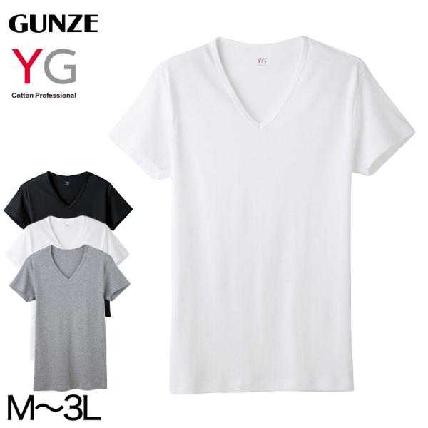 グンゼ tシャツ メンズ インナー 半袖 綿100% vネック M〜3L YG ワイジー 下着 肌着 大きいサイズ 3L 男性 紳士 インナーシャツ 防臭 M L LL 白 黒 グレー V首