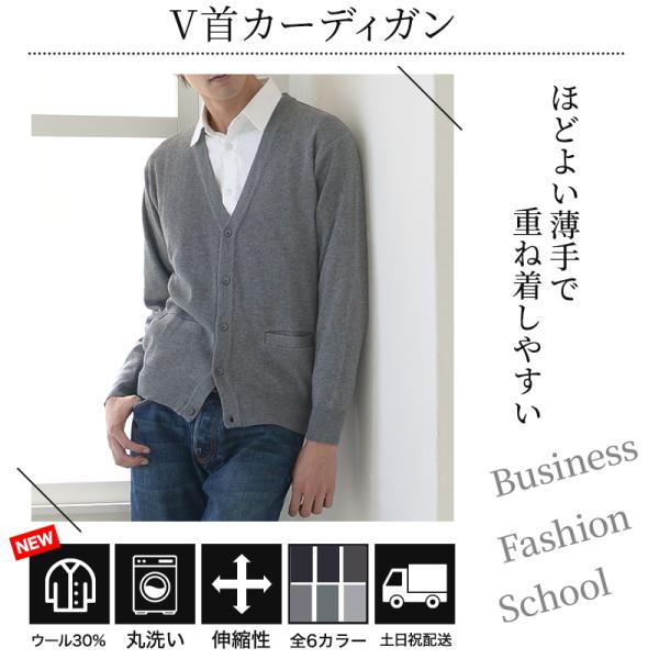 カーディガン メンズ 薄手 S〜3L V首 Vネック ビジネス カジュアル オフィス 秋 冬 ウール 防寒 大きいサイズ メンズニット メンズセーター スリム