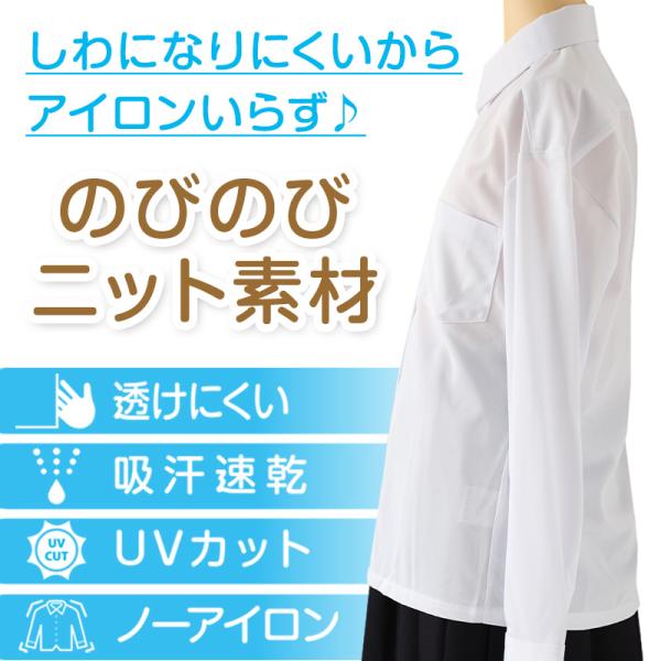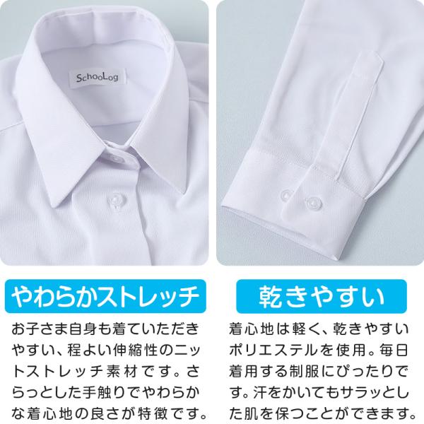 スクールシャツ 女子 長袖 ストレッチ ノーアイロン 中学生 高校生 制服 ワイシャツ SS(A体)〜3L(B体) レディース 学生 カッターシャツ 140 150 160 170