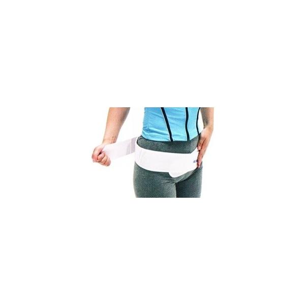 脊椎の土台として重要な働きを持つ骨盤は、日常の活動や様々な運動、思い荷物の上げ下ろしなどで障害を受けることが多く、それが腰痛の原因となることがあります。中でも、仙腸関節が過度に伸張されたり、それを保持している靭帯が断裂を起こしてしまうと、仙腸関節が不安定(仙腸関節可動性亢進)になり、骨盤や腰部筋のスパズム(けいれん)を起こし、腰痛の原因となります。頑固な慢性の腰痛や、1年に何度か突然起こるぎっくり腰の大部分がこの不安定な仙腸関節から怒ります。仙腸関節を固定し安定させることは、腰痛の予防や軽減に役立ちます。