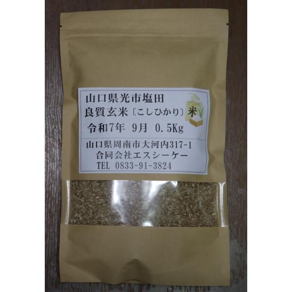 厳選良質米(玄米 0.5kg)お試し品お一人様1個限り【令和7年9月・山口県光市塩田・こしひかり】〔波動測定で選んだ最高級米〕