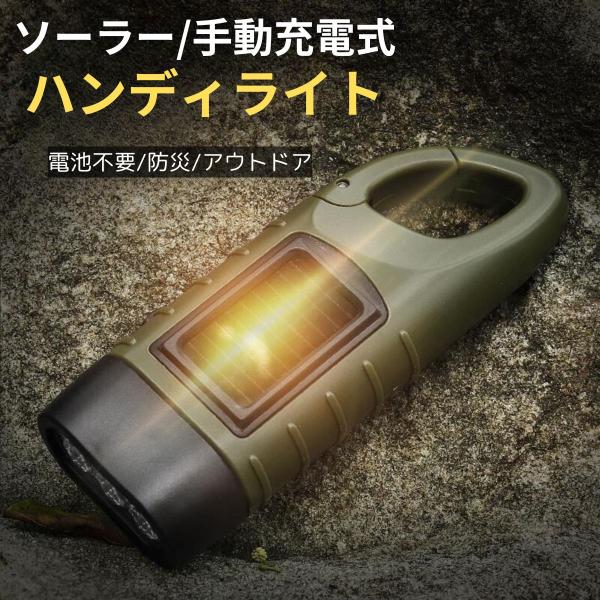 ハンディライト 懐中電灯 led 充電式 太陽光 ソーラー 手巻き 小型 防災 LED アウトドア カラビナ