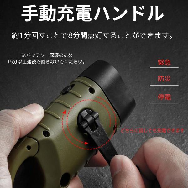 手動充電ハンドル:約1分回すことで8分間点灯することができます。