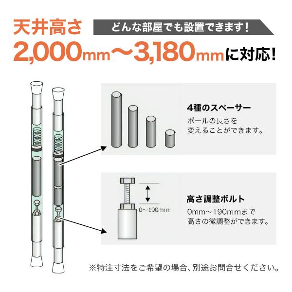 対応天井高さは2000mm〜3180mmで使用可能です。