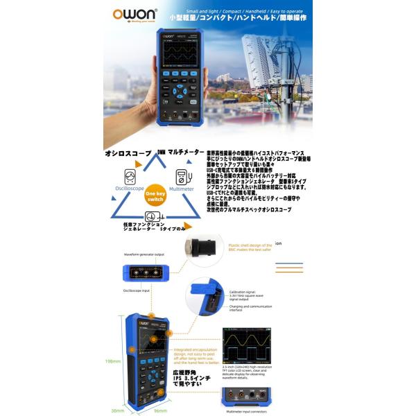 2CH ハンドヘルド デジタルオシロスコープ 70MHz 100MHz DMMマルチメーター 任意波形発生器 HDS200 HDS272S HDS2102 OWON