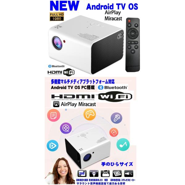 プロジェクター 小型 Android TV OS搭載 天井 スマホ iPhone 短焦点投射 リアルフルHD 1080P Wi-Fi Bluetooth HDMI 業務用 家庭用