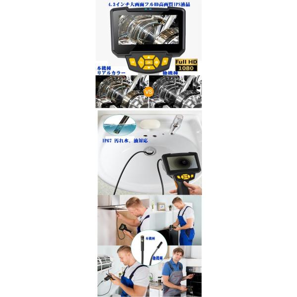 送料無料 保安関係対応EDU使用の防水ファイバーケーブル10m 8mm径カメラ 最新ファイバースコープ搭載2カメラ機能 チューブ先端正面と先端サイドの2カメラ搭載 チューブ操作で360度撮影可能なフル機能 充電式ハンディインスペクションカメラ 内視鏡カメラ フルHD対応の4.3インチ高解像度液晶モニターとビデオ録画と写真撮影、再生可能。USB充電式で最大3.5時間対応 チューブ先端にアクセサリやフックを取り付ければ、カメラで見つけたアイテムを回収できます。さらに市販の64GBまでのマイクロSD対応管状/水道管の洗浄:それは洗浄するのに役立ちます、パイプ後の錆、腐食、ほこり、ひび割れ検査 造船業:ボイラー、蒸気タービン、ディーゼルエンジン、モーターもパイプライン産業機械:エンジンのチェック電子機器、生産ライン、傷や摩耗、ギアボックス、油圧システム、自動車、空調などにも点検、検査、試験、監視、修理、緊急時に大幅に削減