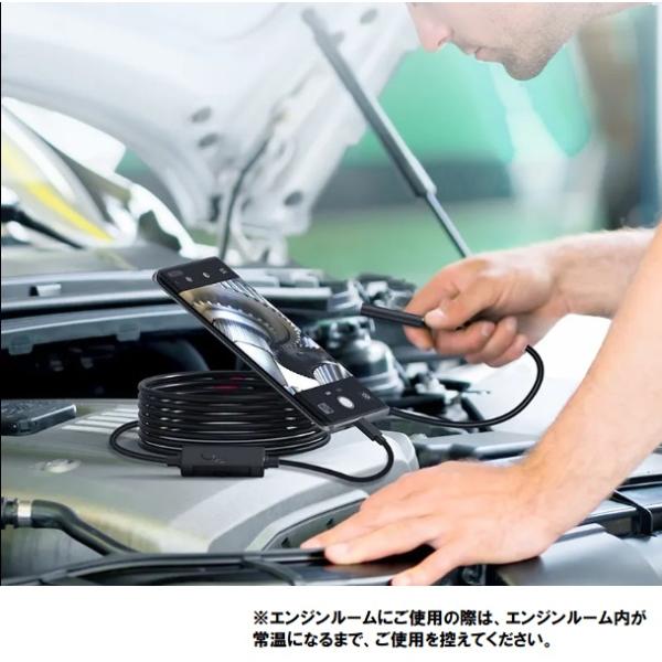 5mのチューブ先端正面のカメラは200万画素フルHD。付属の先端アクセサリーはマグネット、フック、サイドミラーの3種類。カメラの先にアクセサリーを取り付ければ、カメラで見つけたアイテムを簡単に回収できます。確認したい先が直角の場合は、ミラーで様子が確認できます。本製品は、人体にはご使用になれません。防水性能IP67。焦点距離2〜10cm。カメラ視野角70°。アプリは直感操作で簡単にビデオ録画と写真撮影が可能。(本製品を使用するためにスマートフォンやタブレットにはOTG機能が必要です)使用例:水道管の洗浄:つまりの原因や洗浄に適した道具の選定に役立ちます。パイプ内の錆、腐食、ほこり、ひび割れ検査。 造船業:ボイラー、蒸気タービン、ディーゼルエンジン、モーターも。パイプライン産業機械:エンジンのチェック電子機器、生産ライン、傷や摩耗、ギアボックス、油圧システム、自動車、空調などにも点検、検査、試験、監視、修理、緊急時に大幅に削減。対応アプリ「SUP-ANESOK」