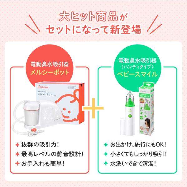 【今だけひかる君付!】メルシーポット プレミアムセット S-504 + S-303 ベビースマイル 電動鼻水吸引器 公式 鼻水吸引器 鼻吸い器 出産祝い