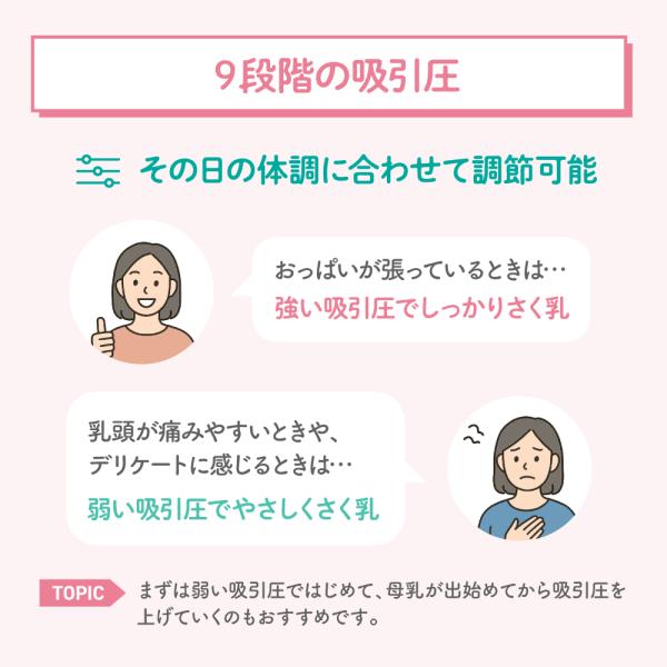 ・4種類の吸引モードと9段階の吸引圧設定が可能