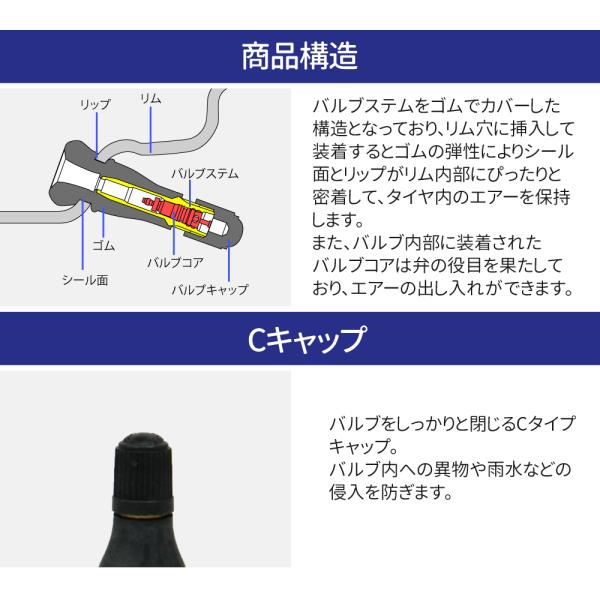 日本製 エアバルブ TR-412 Cキャップ 10個 チューブレスバルブ スナップインバルブ タイヤ エアバルブ ゴムバルブ エアーバルブ タイヤエアーバルブ 防水