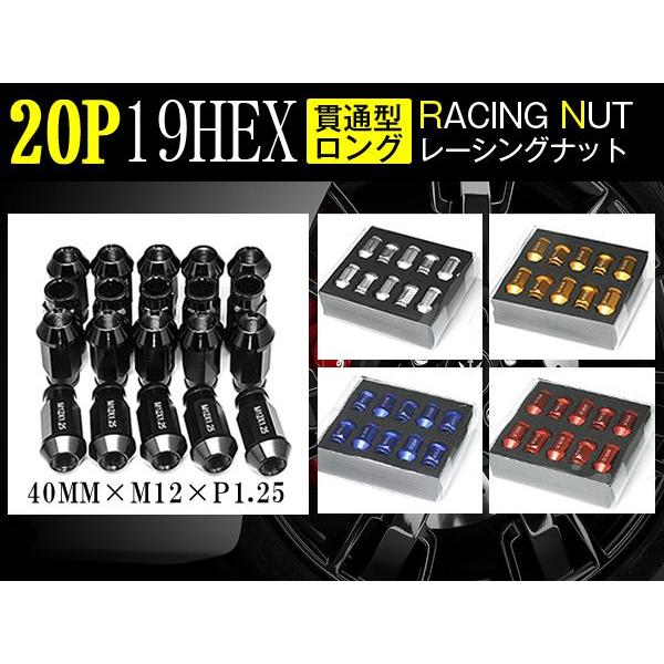 レーシングナット ホイールナット M12×P1.25 (貫通タイプ) 20個 7075アルミ アルマイト 40mm 赤 青 銀 黒 ゴールド5色選択 貫通ナット