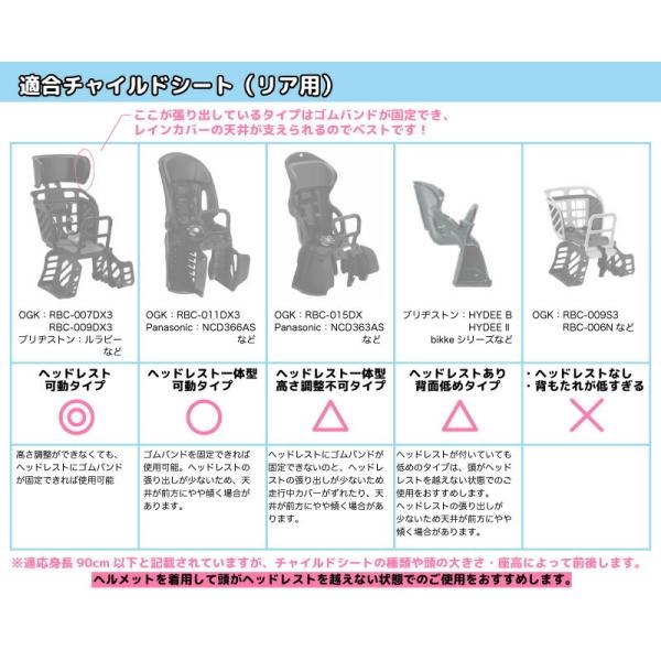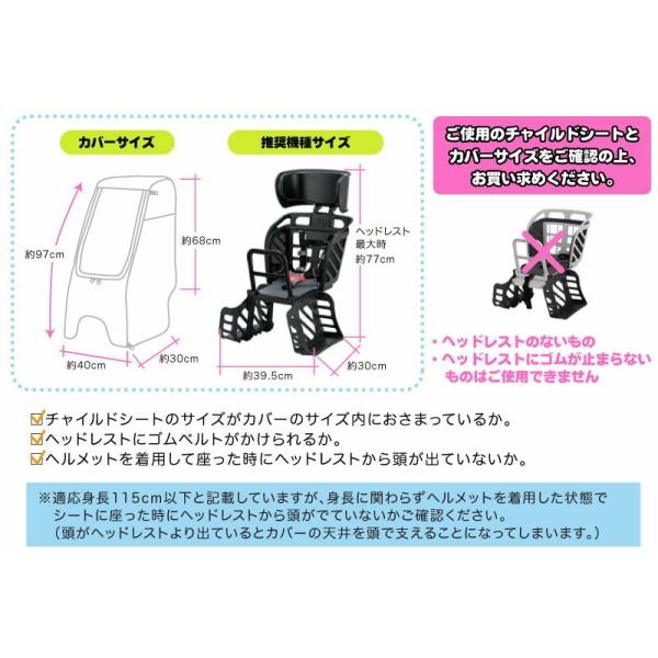 自転車、チャイルドシートによってはご使用できないものもございます。 お使いの自転車、チャイルドシートのサイズ、商品画像の説明をよくご確認ください。