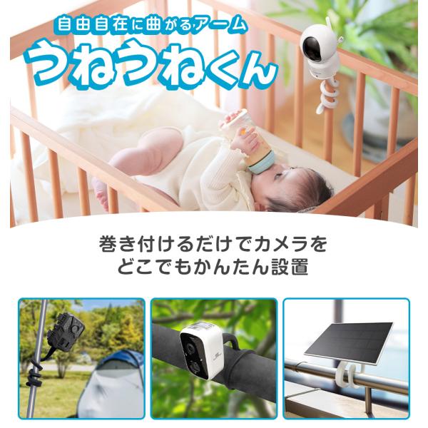 見守りカメラ バッテリーカメラ トレイルカメラ ソーラーパネル 取り付け用アーム うねうねくん