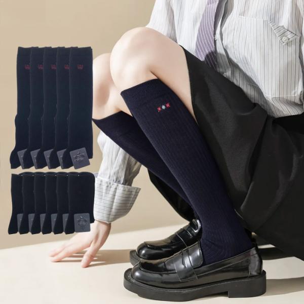 ソックス ハイソックス クルーソックス スクールソックス ネイビー 紺 5足組 6足組 セット 福袋 学校 通学 学生 女子高生 中学生 高校生