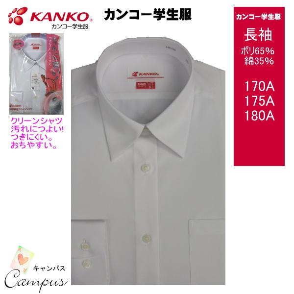 カンコー 学生服 スクールシャツ カッターシャツ 長袖 165A〜190A RoomDry ルームドライ KN4830 ボーイズ ホワイト