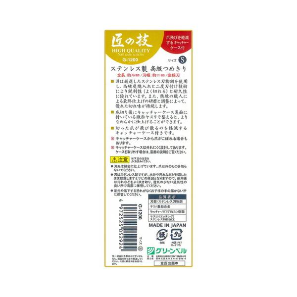 ステンレス製キャッチャーつめきりS G-1200 ステンレス製 キャッチャー 爪切り S 匠の技 日本製 ネイル ネイルケア グリーンベル 爪 ステンレス