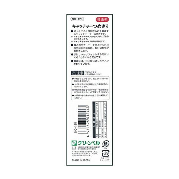 キャッチャーつめきり NC-128 キャッチャー 爪切り NC-128 日本製 グリーンベル 爪 ネイル ネイルケア 普通型 職人気質