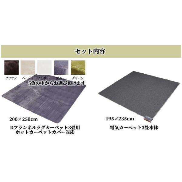 ホットカーペット 3畳 セット 本体+カバー 「 Dフランネルラグカーペット 」200×250cm ホットカーペットカバー 無地 長方形 こたつ敷き布団