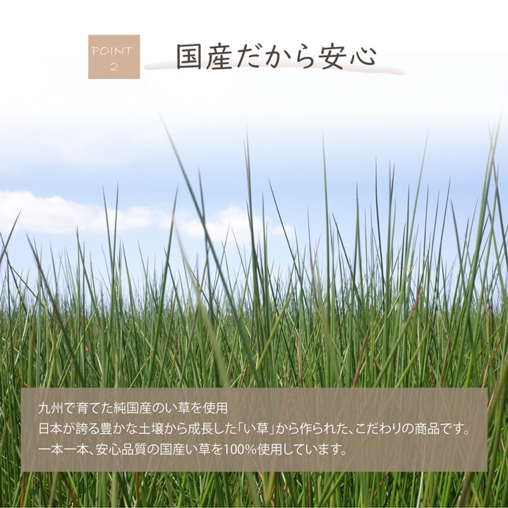 ・本品は、日本国内で栽培、育成、収穫された天然い草を使用しています。