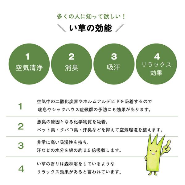 ■い草の特徴により、就寝時の汗の吸収や、消臭をしてくれるので快適に過ごせます。