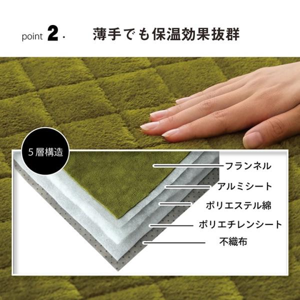 キルトラグ 長方形 暖かい 保温 蓄熱 断熱 アルミ 滑りにくい 無地 「レイヤー」 約200×240cm ブラウン / グリーン / ベージュ / グレー / ネイビー