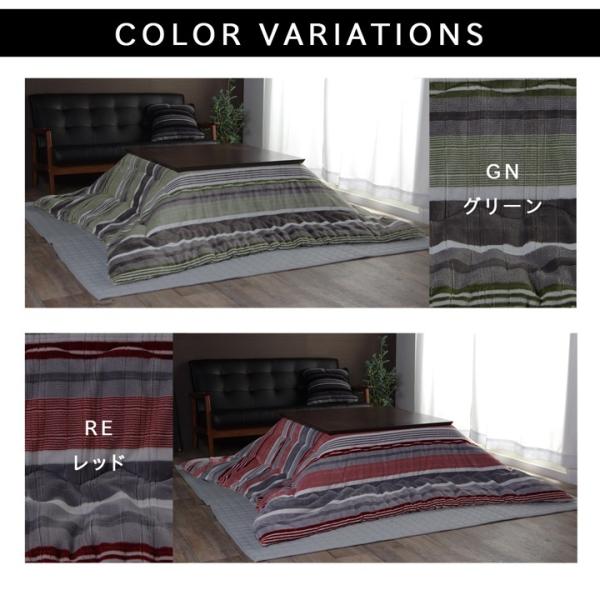 こたつ布団 正方形 カジュアル ストライプ柄 「 ニードル 薄掛け 」約190×190cm グリーン/レッド/ブルー こたつ 掛布団 掛け布団 薄掛け