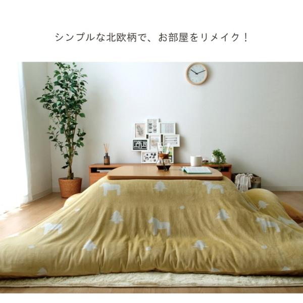 こたつ布団 カバー 洗える 長方形 ファスナータイプ 北欧調 「ホース」 グリーン/イエロー 「小枝」 ベージュ/グレー 約195×245cm こたつカバー こたつ
