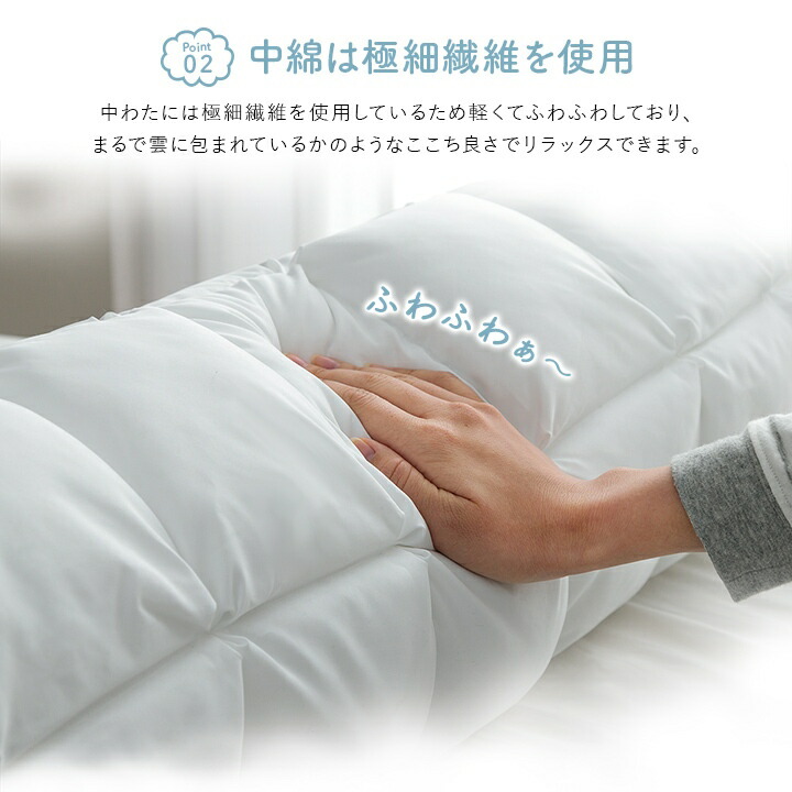 ■側生地は立体キルト構造でもこもこを表現、更に中わたには極細繊維を使用しているため軽くてふわふわしており、身体に優しくフィットし、まるで雲に包まれているかのようなここち良さでリラックスできます。