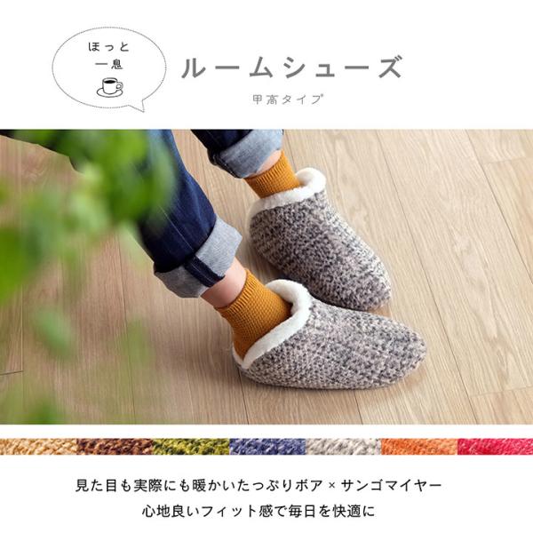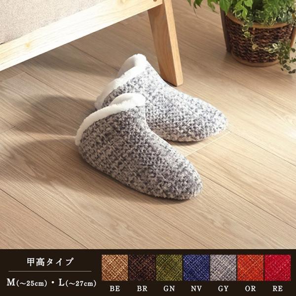 ルームシューズ スリッパ レディース 7色展開 「ノート 甲高シューズ」 Mサイズ(約25cmまで) / Lサイズ(27cmまで) 履きやすい 室内 もこもこ あったか 秋冬