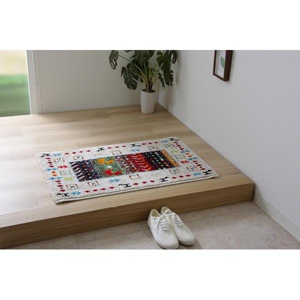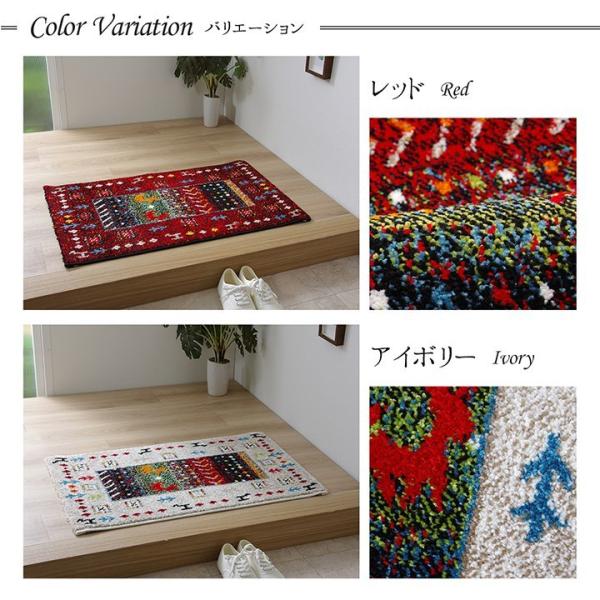 玄関マット トルコ製 ウィルトン織り 「イビサ2」 約50×80cm レッド/アイボリー 玄関 マット ウィルトン ボリューム感 華やか 高級感