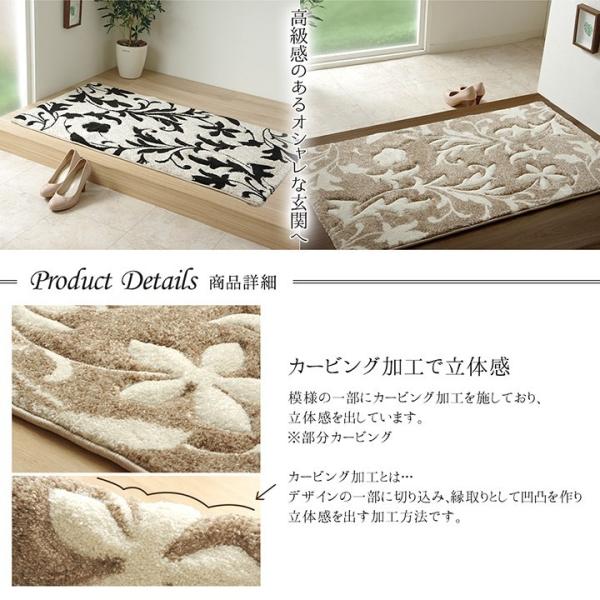 玄関マット 屋内 トルコ ウィルトン織マット 「 ネム 玄関マット 」 約60×90cm ブラック/ベージュ トルコ カービング加工 立体感 ふかふか 抗菌防臭