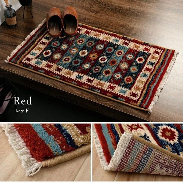 玄関マット 屋内 ウィルトン織マット 「 プルメリア 」 約60×90cm ネイビー / レッド モルドバ製 ウィルトンマット エスニック キリム柄 華やか 高級感