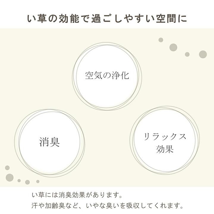 ■ い草には空気の自然浄化作用、湿度の調節作用、リラックス効果などがあります。