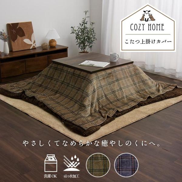 こたつ布団カバー 上掛けタイプ 長方形 単品 「カリス 上掛け」 約195×245cm ブラウン / ネイビー 上掛けカバー 洗える チェック柄 撥水