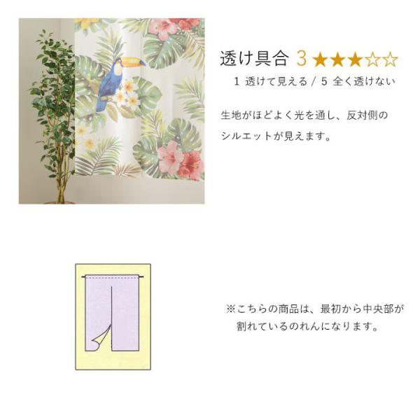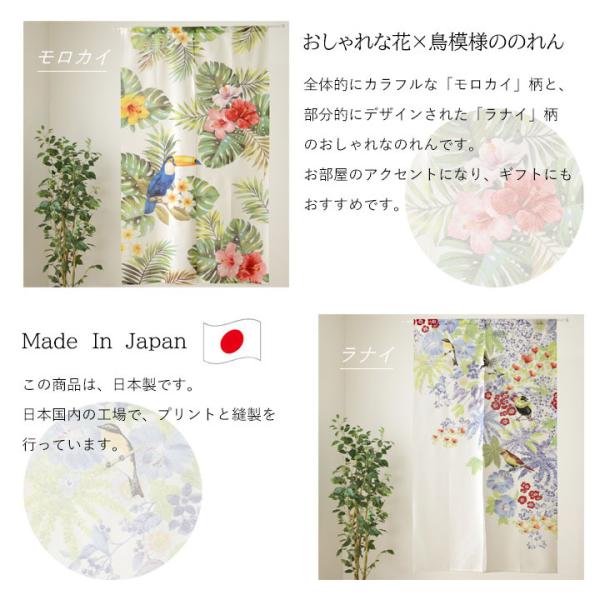 のれん モロカイ ラナイ 幅85×丈150cm花 フラワー プルメリア モンステラ 小鳥 鳥 バード カラフル 南国 ハイビスカス おしゃれ