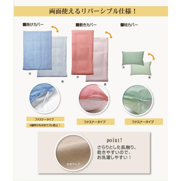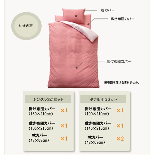 布団カバー ダブル 4点セット 無地 洗える リバーシブル 「 リバDカバー4点IT 」 ファスナー ブルー グリーン ブラウン ベージュ ピンク オレンジ