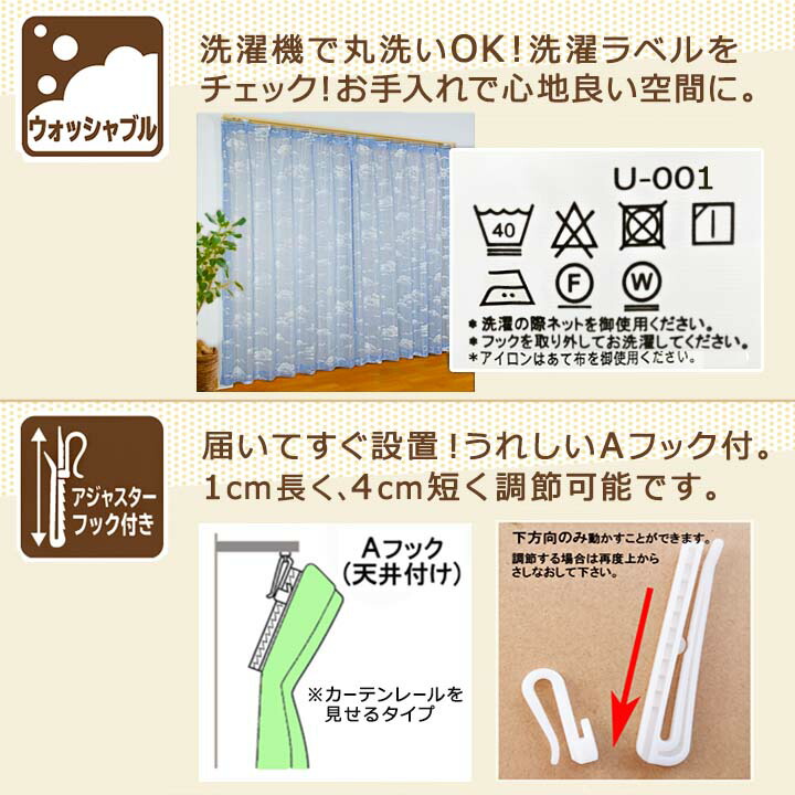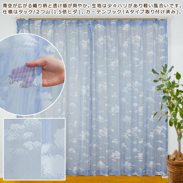【検索キーワード】カラー レースカーテン おしゃれ 200幅 幅100 柄 子供部屋 部屋カーテン 雲 青空 ブルー 洗える 爆買