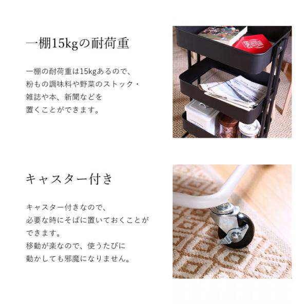 キッチンワゴン 3段 キャスター付き バスケット付き 爆買