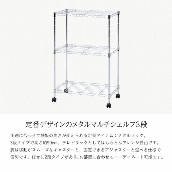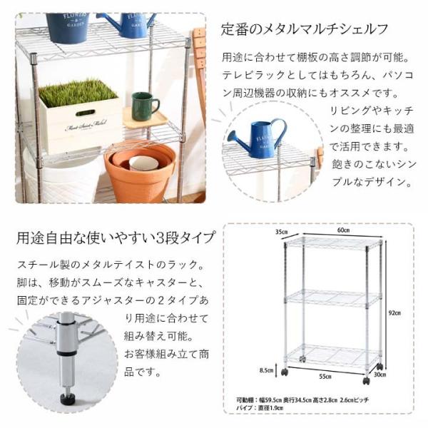 メタルマルチシェルフ3段 60 クロム MS-63593CR (fbc) 幅60×奥行35×高さ92cmクロム メタルラック 整理 収納 キャスター アジャスター